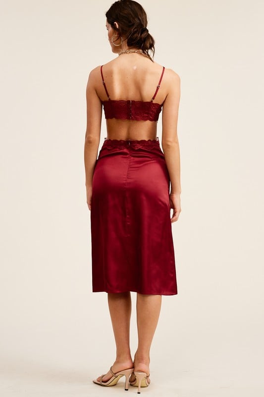 Satin, Lace Midi Dress